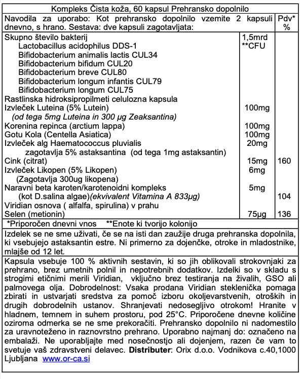 Čista koža kompleks, pomoč pri kožnih nepravilnostih, 60kapsul